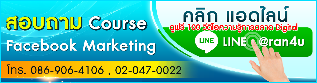 อบรมการตลาดดิจิทัลสำหรับ ธุรกิจ ผู้ประกอบการ บุคคลทั่วไป เรียนรู้เจาะลึกวิธีใช้สื่อการตลาดดิจิทัลทั้ง 12 เครื่องมือของ Google และ Facebook อย่างถูกวิธีส่งผลให้เกิดกำไรได้สูงที่สุด