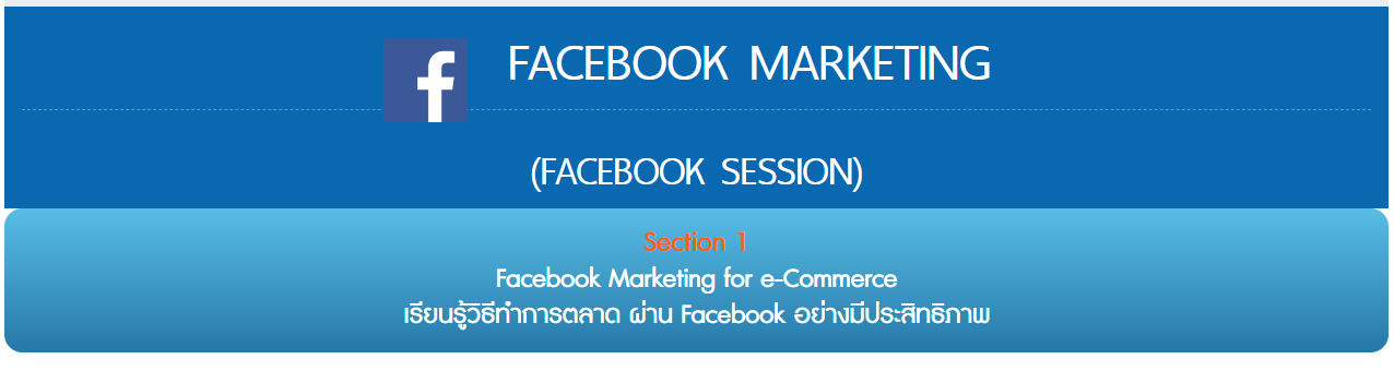 เรียน Facebook Marketing Plan ที่จะทำให้คุณสามารถวางแผนและใช้เครื่องมือโฆษณาของ Facebook ทุกรูปแบบ เชื่อมโยงเข้าด้วยกันอย่าง "มีกลยุทธ์" ไม่ใช้สอนเพียงแค่ ให้คุณขายของ Online เก่งที่สุด แต่จะทำให้คุณเข้าใจการทำตลาดด้วย Facebook รู้ลึกในทุกแง่มุม