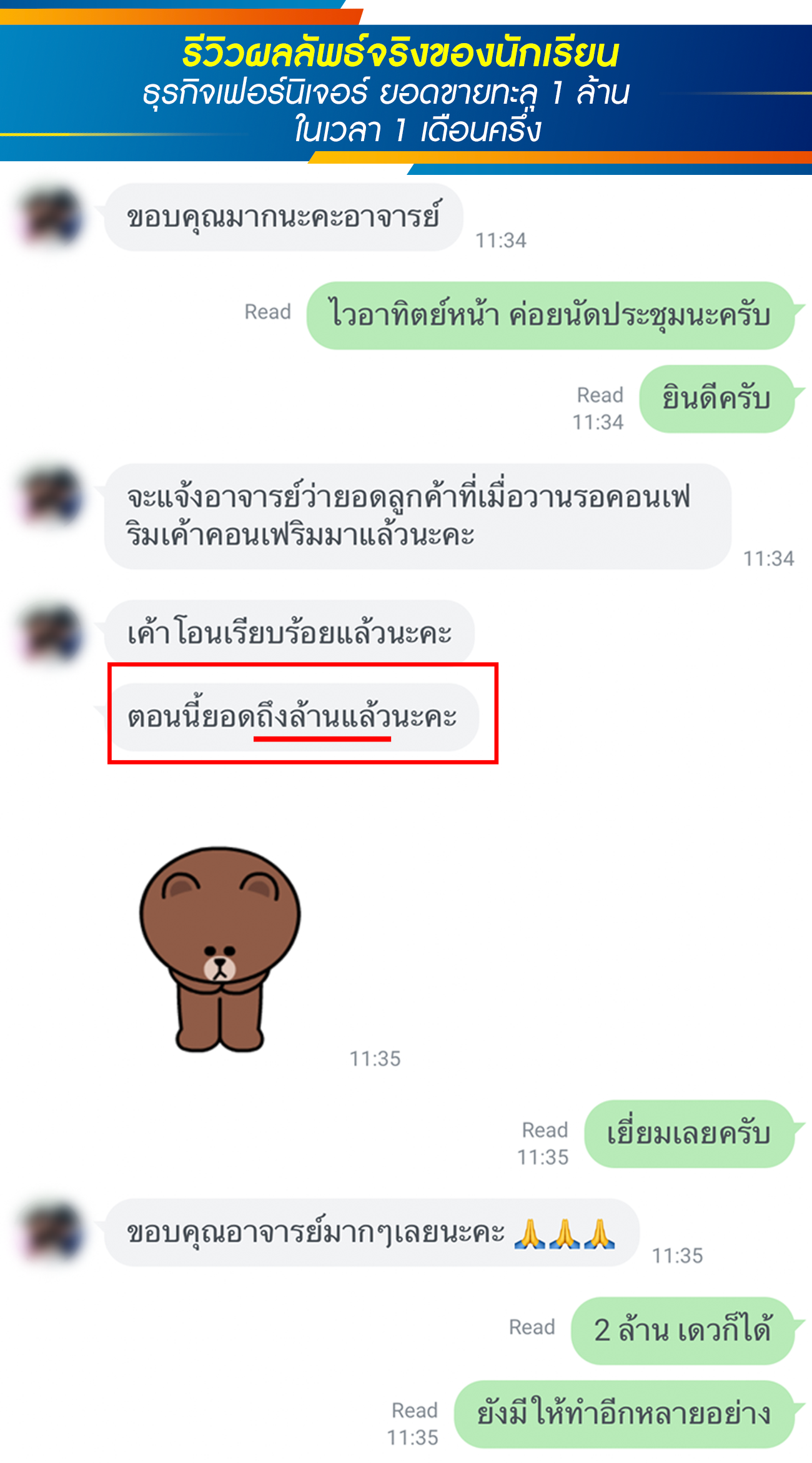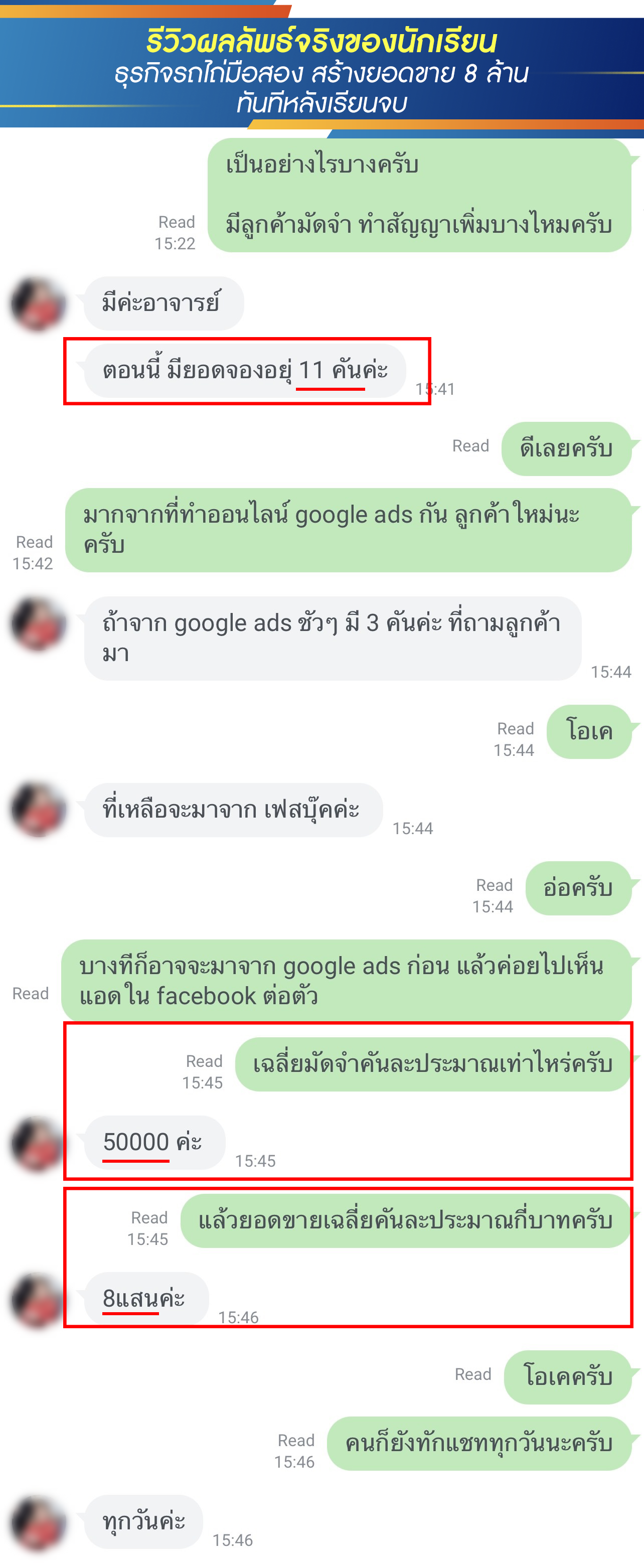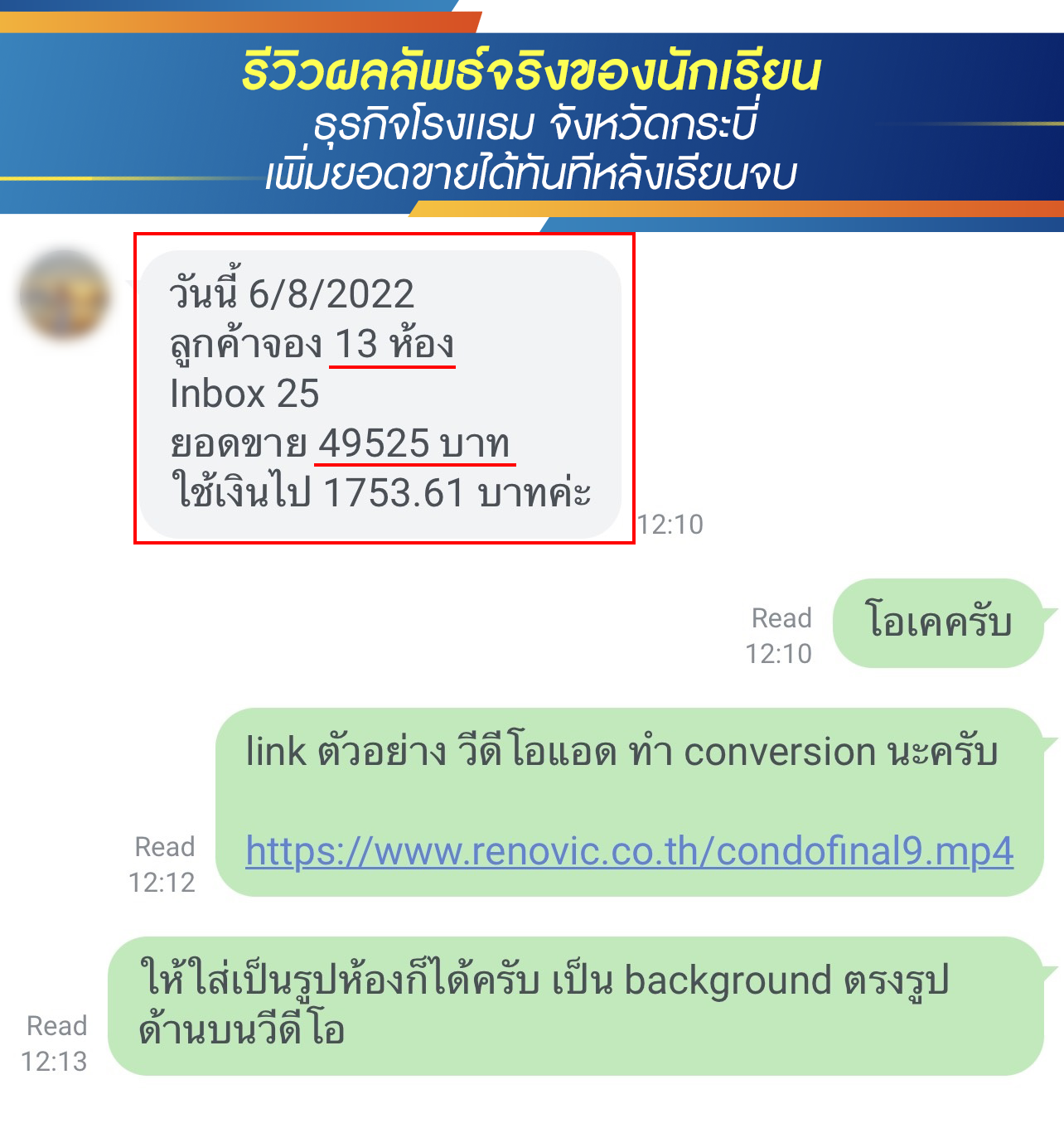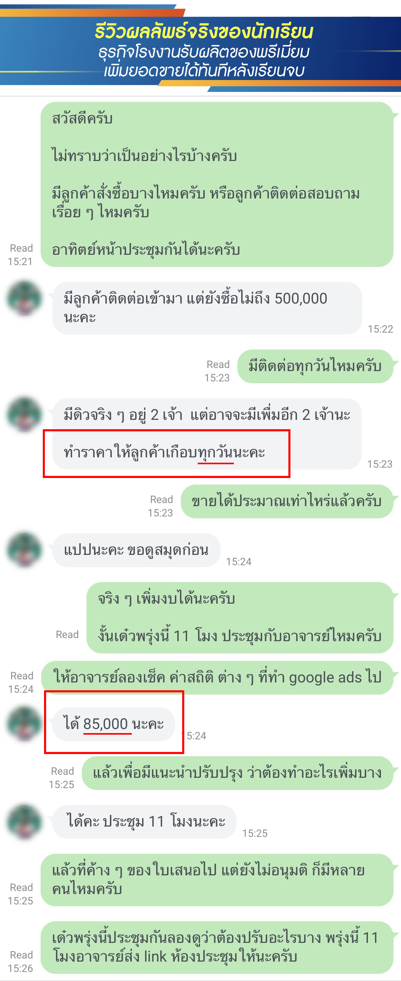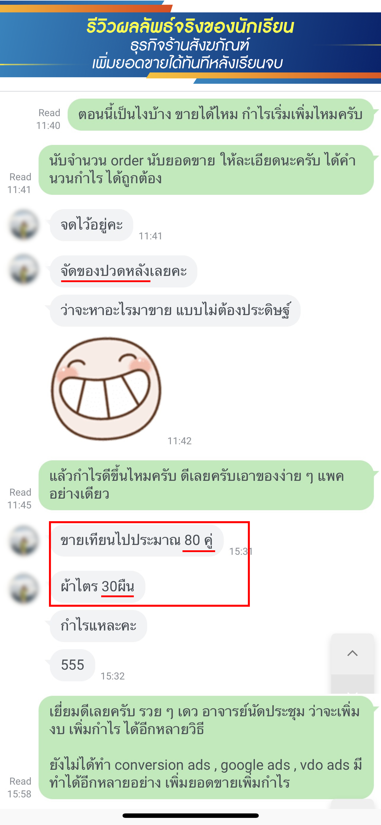 สำหรับท่านที่สนใจ แต่อยากดูตัวอย่างผลงาน รีวิวนักเรียนเก่า ที่อบรมไปแล้วเพิ่มยอดขาย ทำกำไรเพิ่มได้จริง